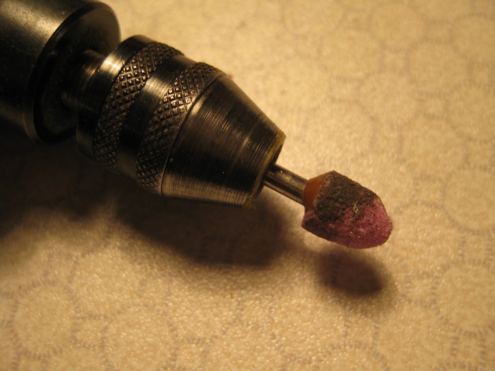 Dies geht mit Sandpapier oder elektrisch mit einer kleinen Handbohrmaschine mit eingespannten Schleifstein.