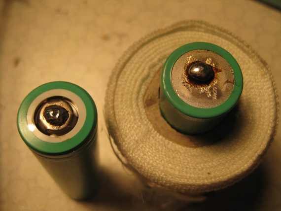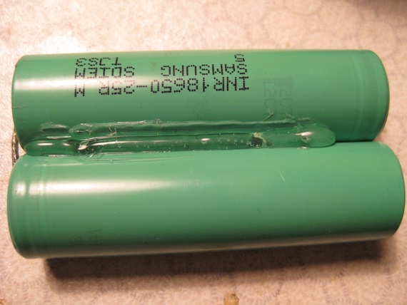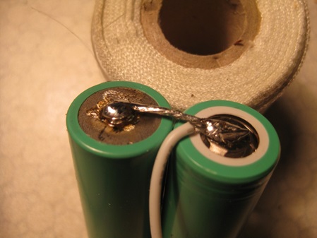 (Da die Zellen durch den "Lötzinn-Butzen" nicht mehr sicher stehen, eine Halterung zur Hilfe nehmen)