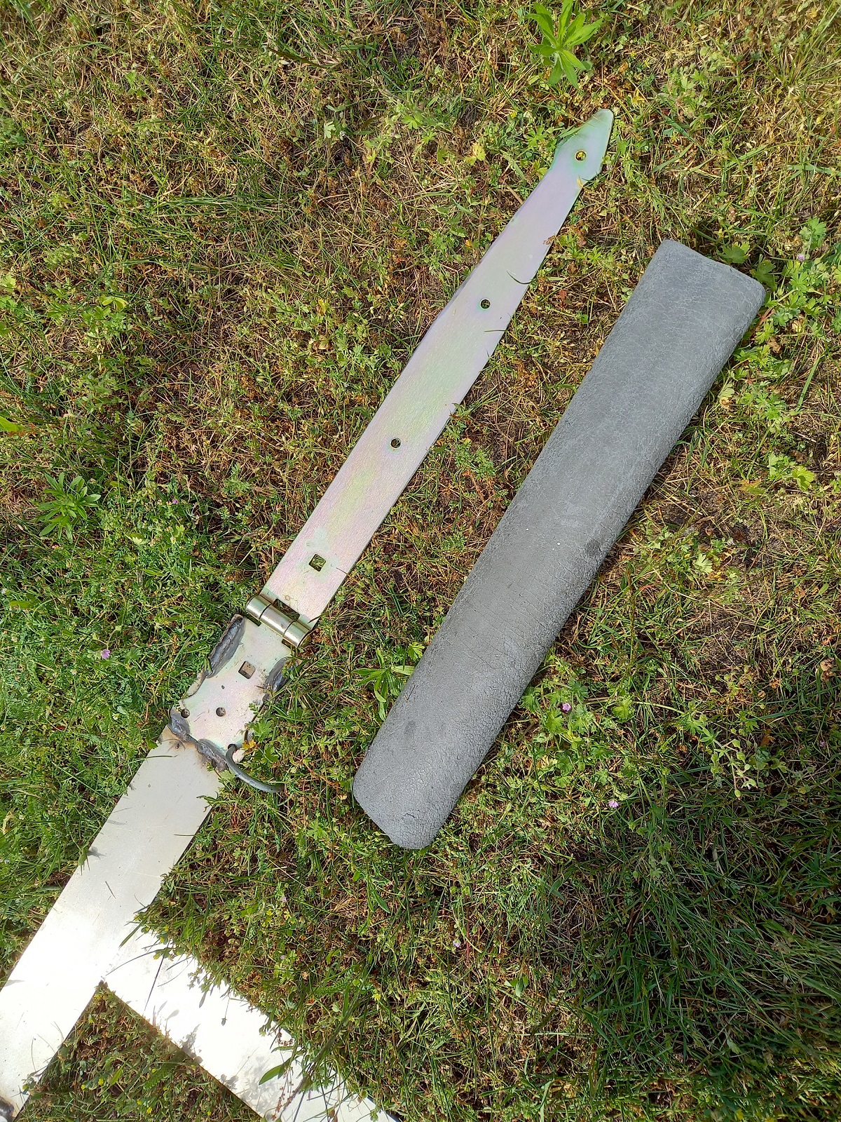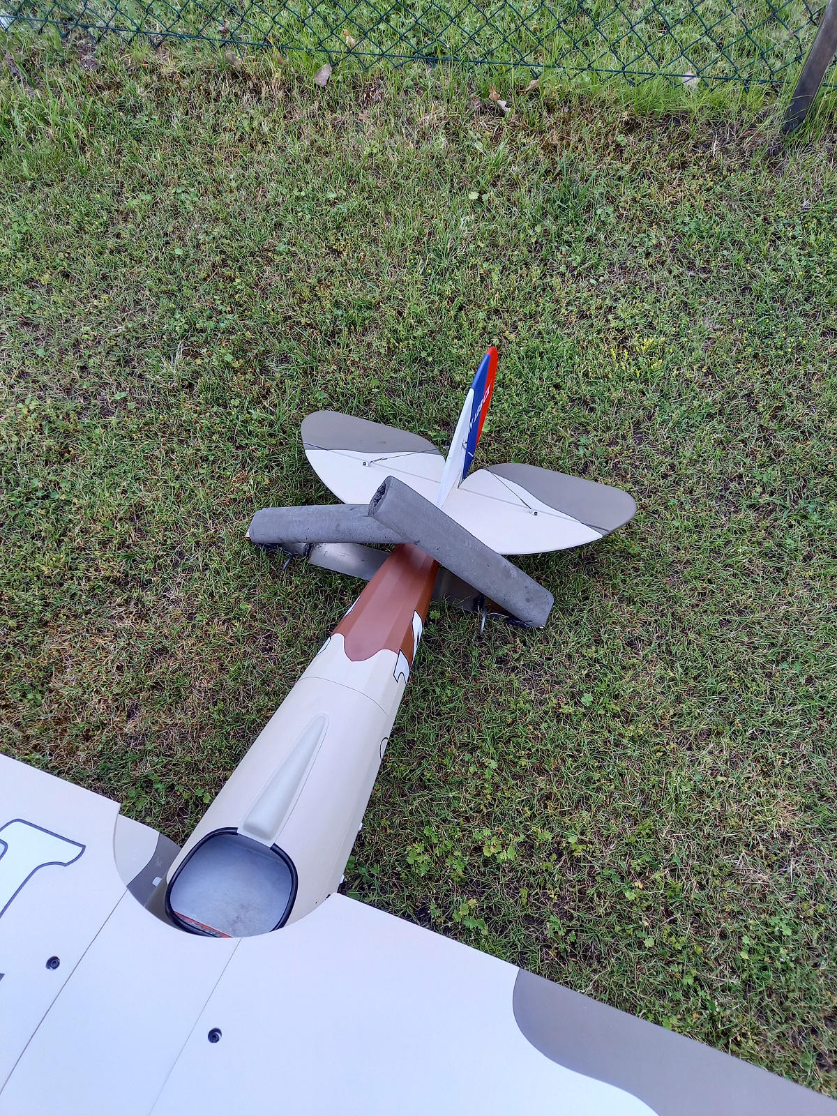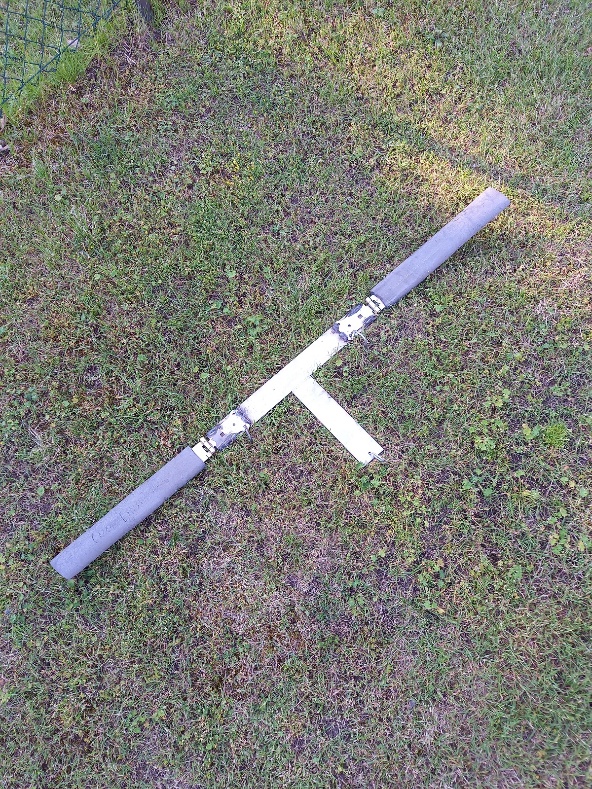Die seitlichen Schenkel (mit Schaumstoff gepolsterte Torschaniere) werden einfach seitlich vor dem Höhenleitwerk an den Rumpf angelehnt.